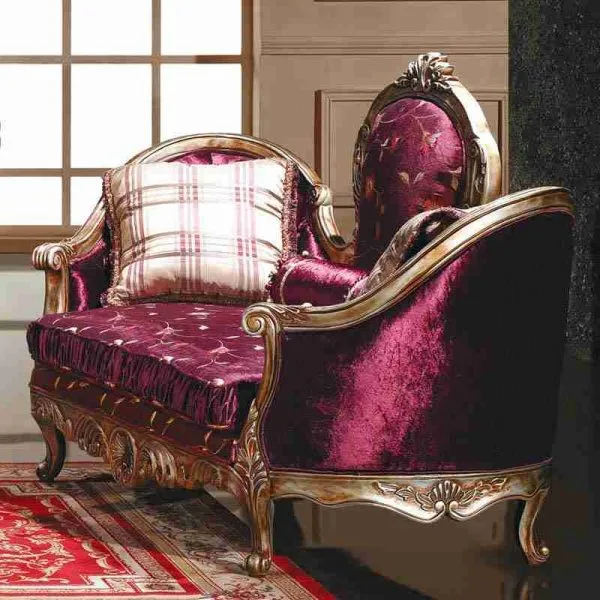 The design articulates a high-period Baroque sensibility. The crest rail features deep-relief acanthus carving that is pierced to reduce visual mass, allowing the wall treatment behind it to breathe. The unique selling proposition lies in the side panels: a field of warm walnut veneer with floral inlay, framed by a sweeping gold leaf scroll. This juxtaposition of wood grain and metallic lustre adds a layer of cabinetry-grade detail to the soft furnishings.
